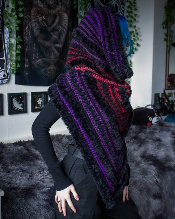 Wild Oleander Hooded Scarf - Black, Red & Purple