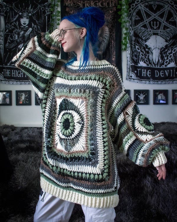 Get a matching beanie: https://www.shalfeystitches.com/product/17846759/cyclops-beanie-chunky-grey-green
