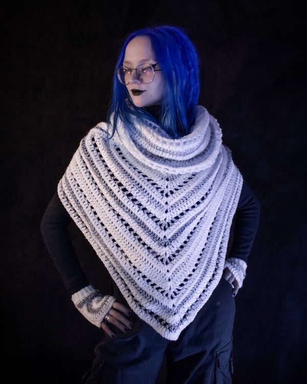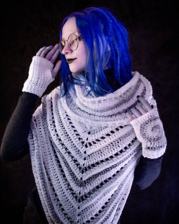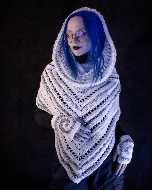 One of a kind fantasy fashion inspired crocheted hooded scarf. Fully handmade!